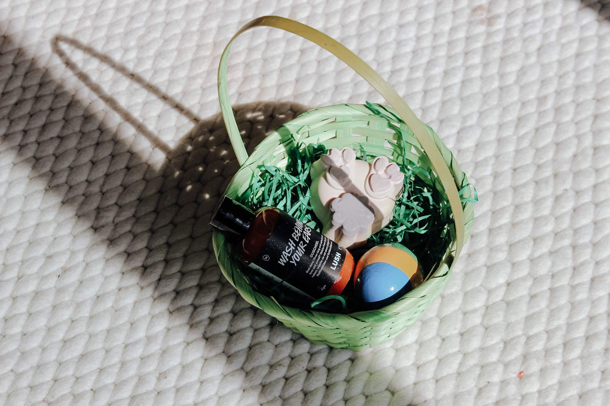 Mit der fröhlich geformten Nice Buns Hun-Seife von Lush macht Händewaschen plötzlich richtig Spaß – fruchtig-duftend und in Hasenform ein echter Hingucker im Badezimmer. Ebenfalls perfekt für kleine Wasserratten: das leuchtend orangefarbene Wash Behind Your Ears-Duschgel. Es duftet herrlich frisch nach Orangen und Karotten und sorgt ganz nebenbei für saubere Osterohren.