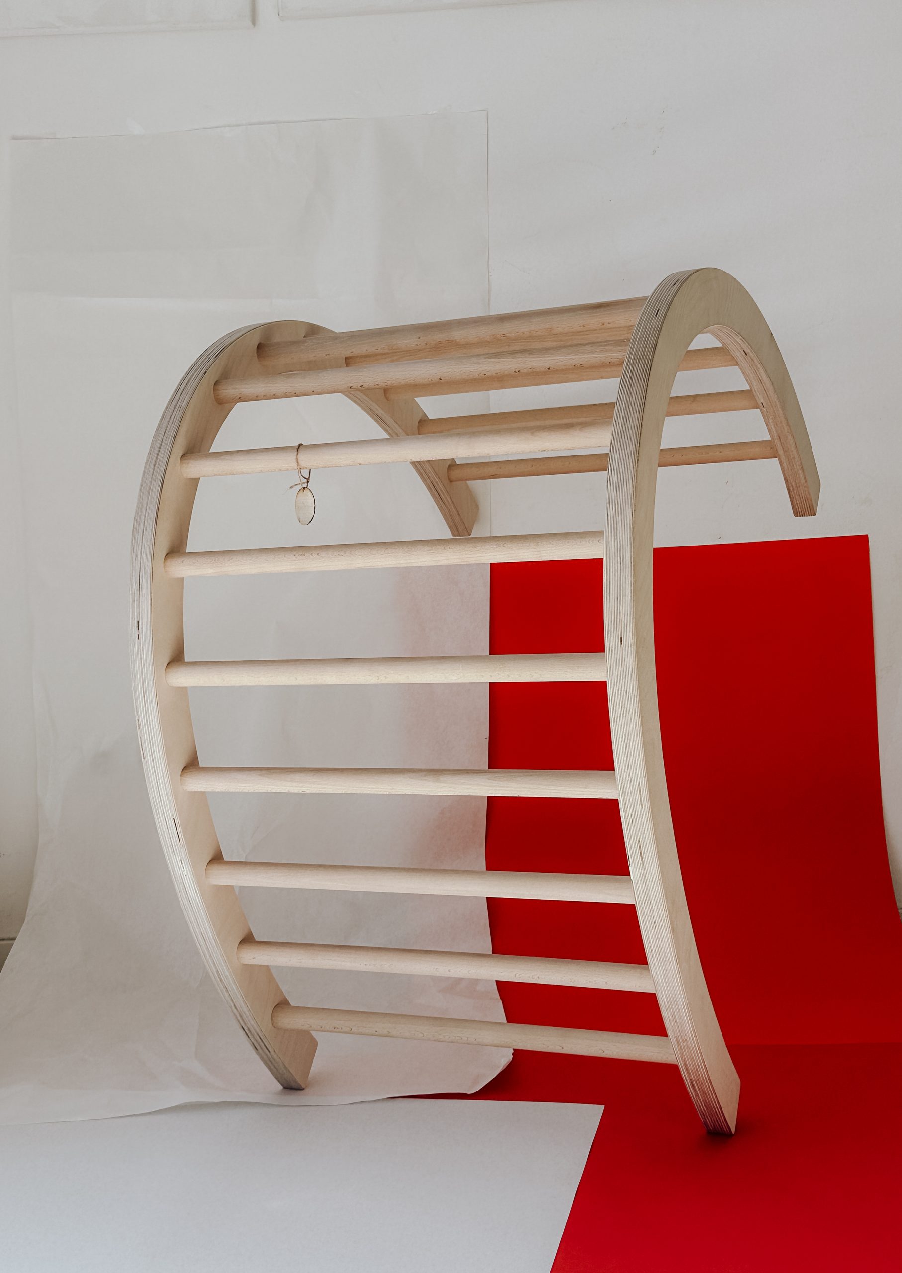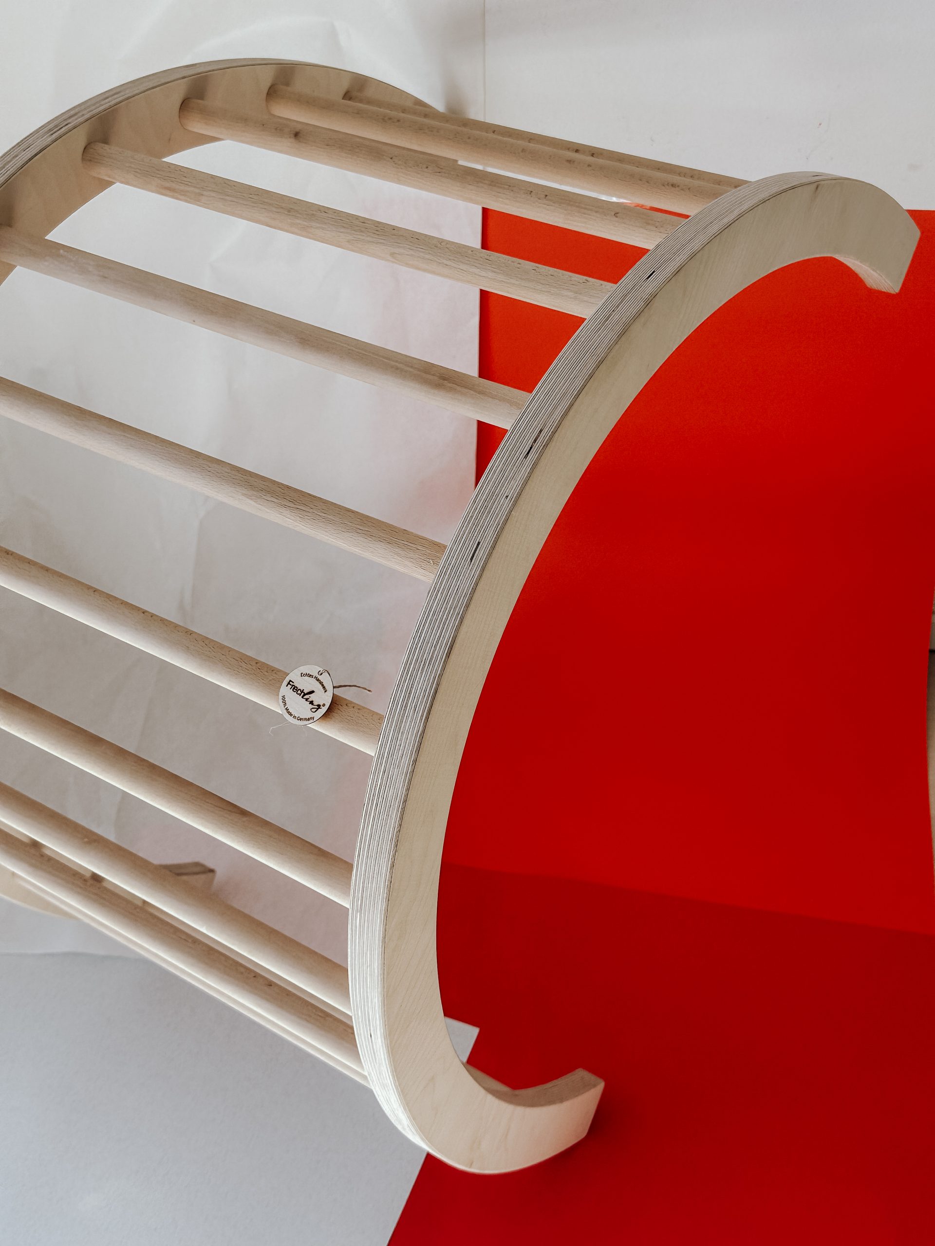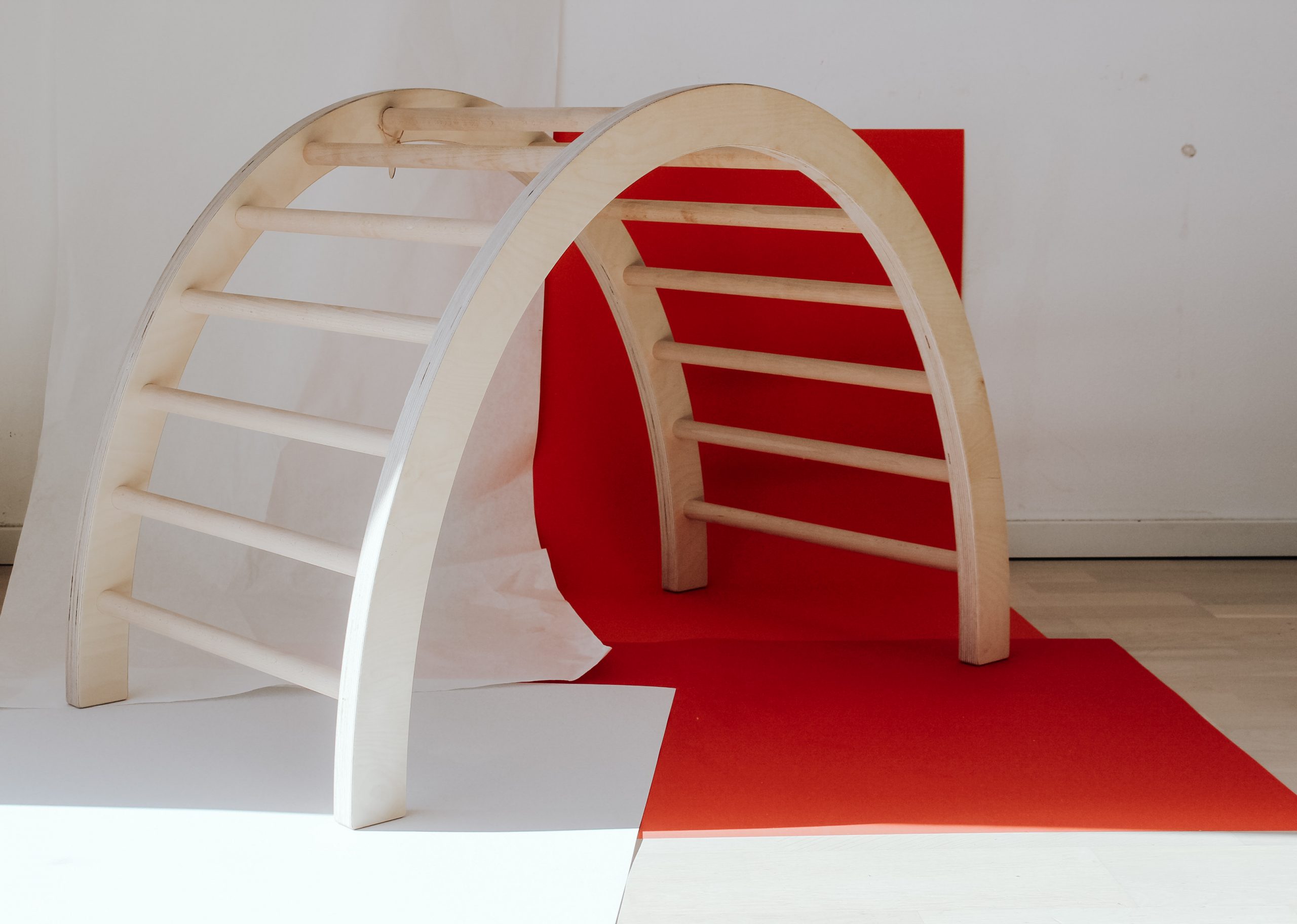 Der Kletterbogen von Frechling ist ein Spielplatz fürs Wohnzimmer. Er ist stabil, handgefertigt und lädt Kinder dazu ein, auszuprobieren, auszubalancieren und sich neue Wege zu überlegen. Mal wird er zur Hügellandschaft, mal zur Höhle, mal zur Rutsche, mal zum Schiff. Es ist faszinierend zu sehen, wie viel Fantasie in diesem einen Möbelstück steckt. Besonders an langen Wintertagen sorgt er dafür, dass überschüssige Energie in sichere Bewegung umgewandelt wird – drinnen, warm und jederzeit verfügbar.