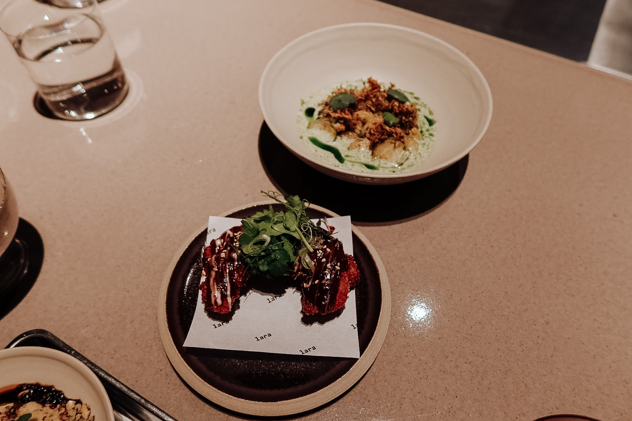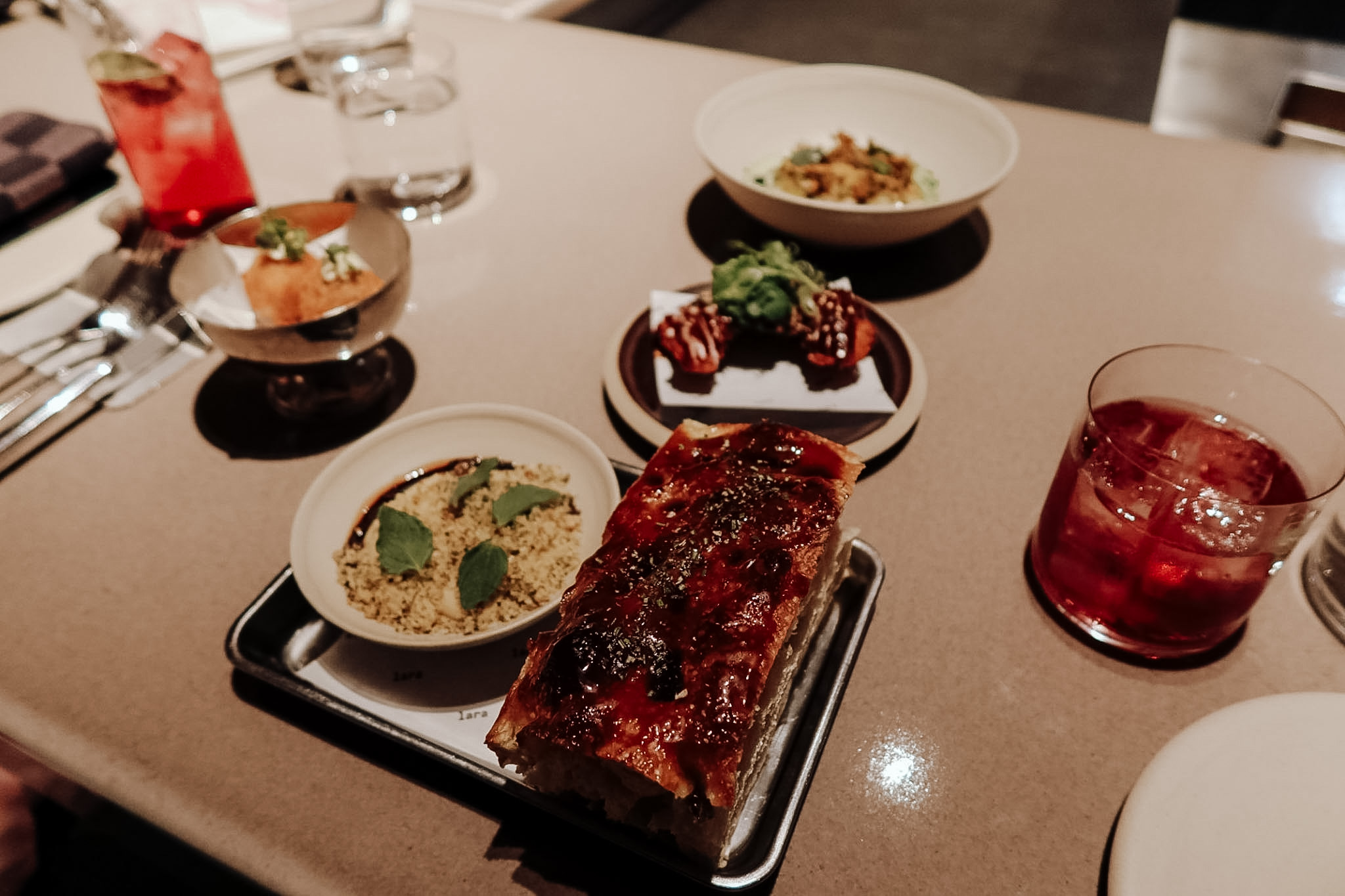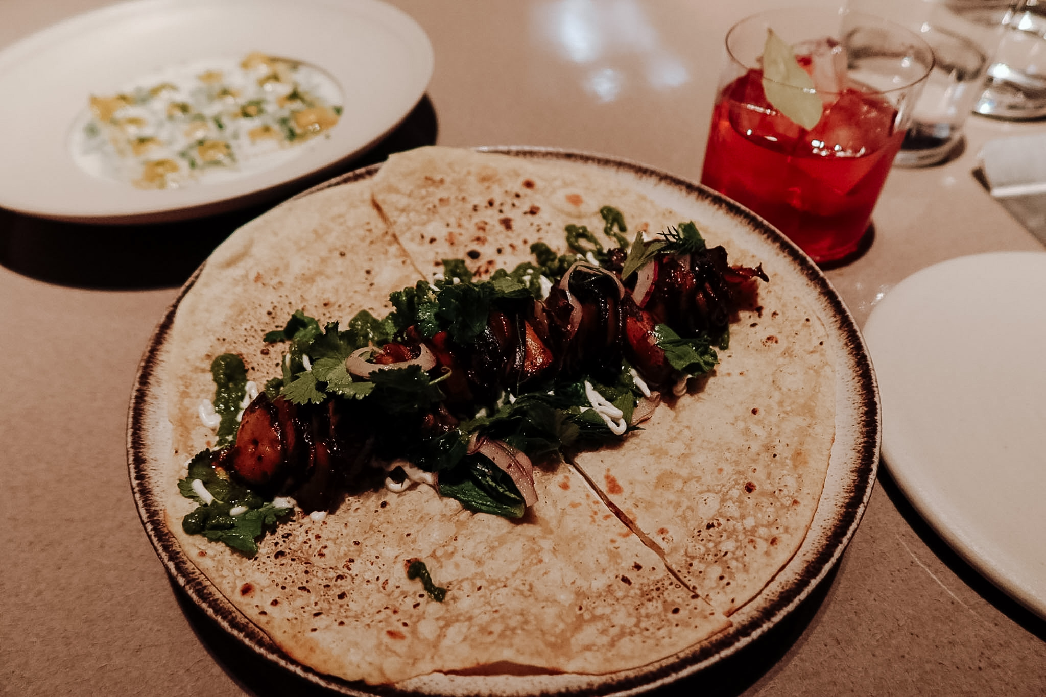 Das Konzept ist komplett vegan, was man aber nicht im klassischen Sinn merkt – eher im besten. Alles hat irre gut geschmeckt. Die Gerichte sind kreativ! viel Gemüse, saisonal gedacht, leicht und richtig intensiv im Geschmack. Man bestellt am besten mehrere Sachen, teilt ein bisschen und isst sich einfach durch die Karte.