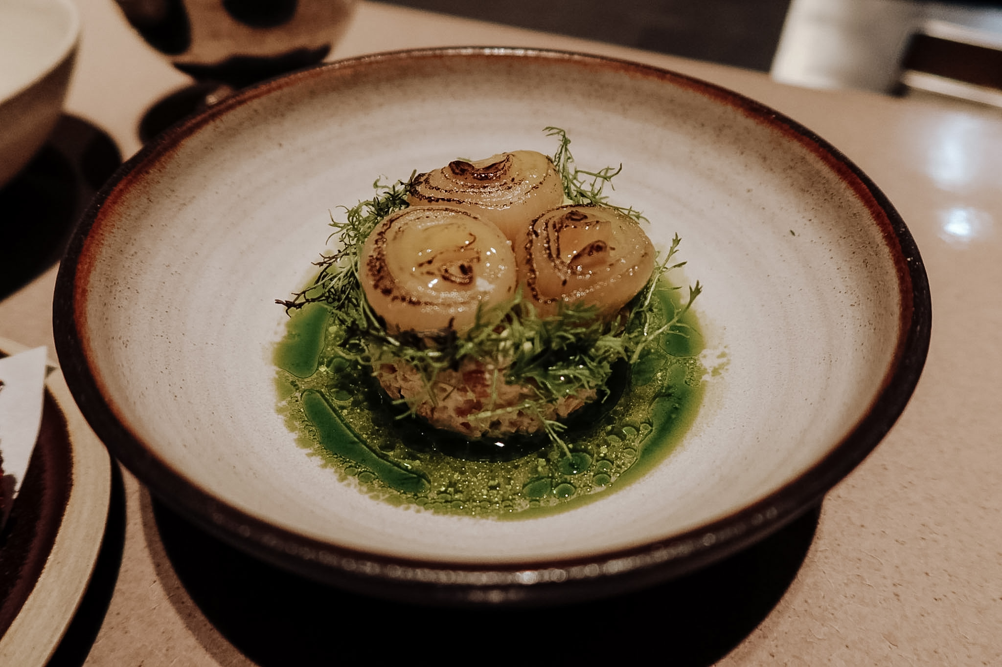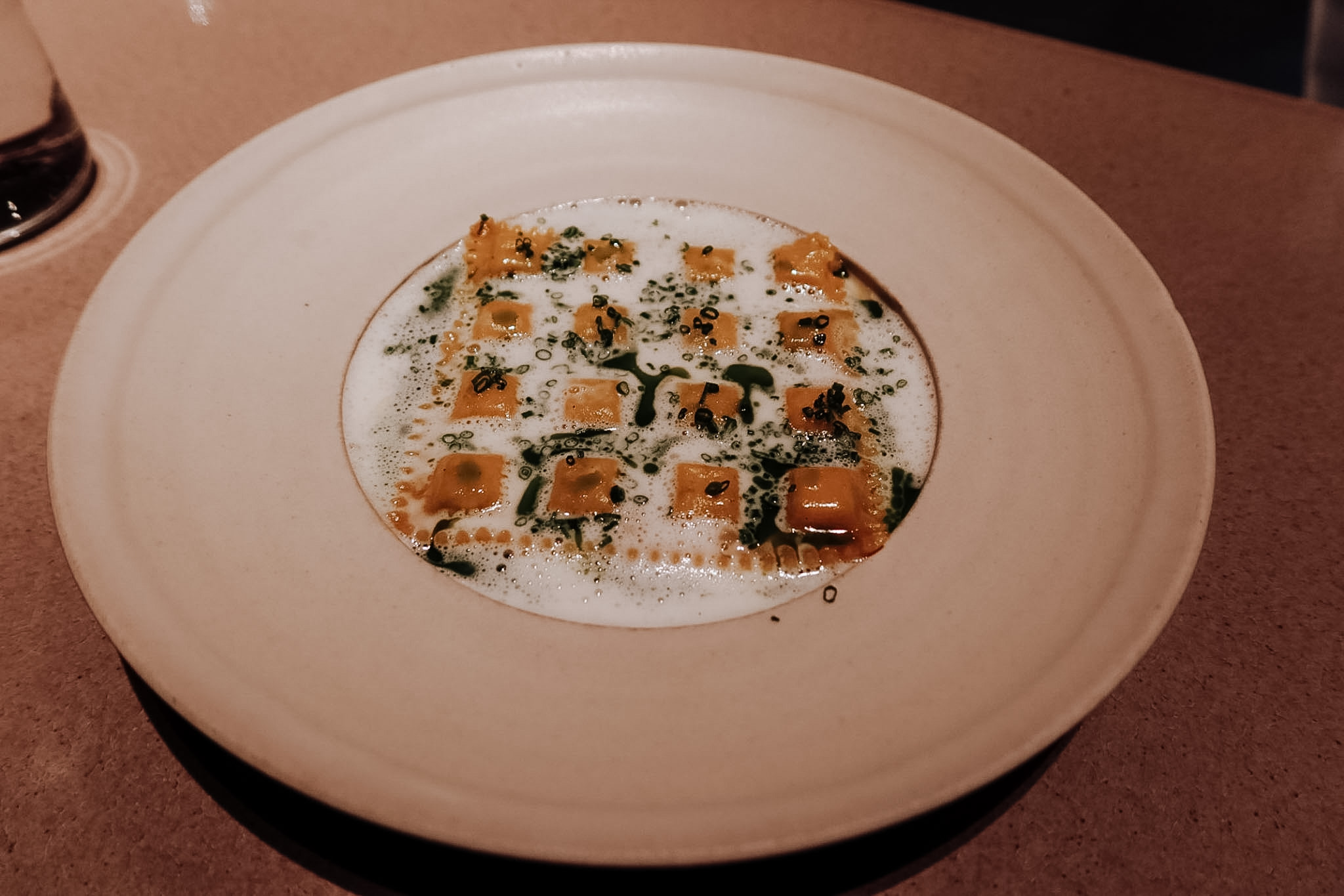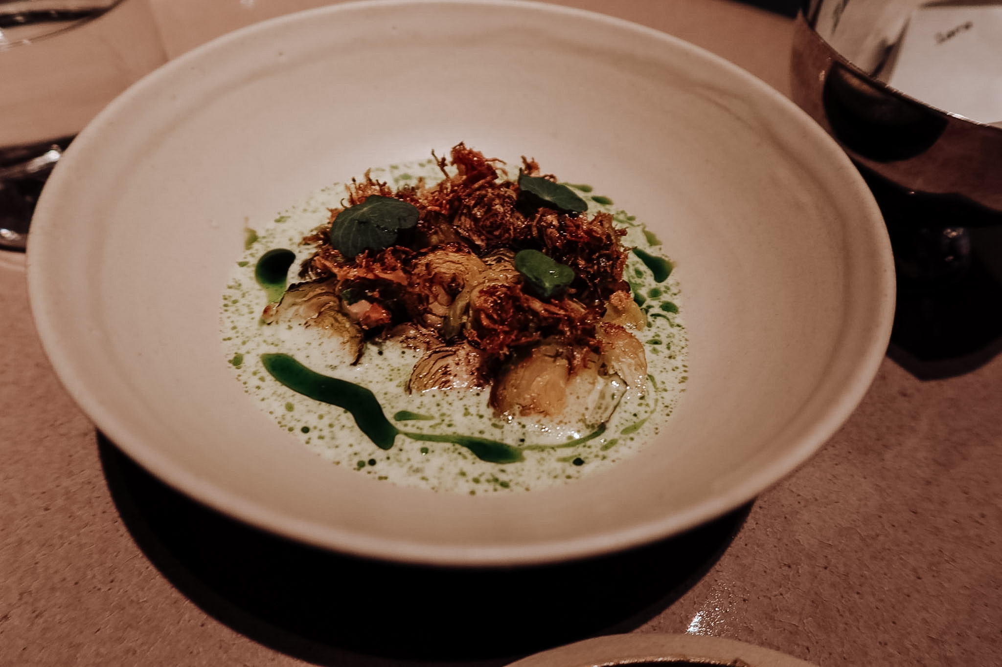 Das Konzept ist komplett vegan, was man aber nicht im klassischen Sinn merkt – eher im besten. Alles hat irre gut geschmeckt. Die Gerichte sind kreativ! viel Gemüse, saisonal gedacht, leicht und richtig intensiv im Geschmack. Man bestellt am besten mehrere Sachen, teilt ein bisschen und isst sich einfach durch die Karte.