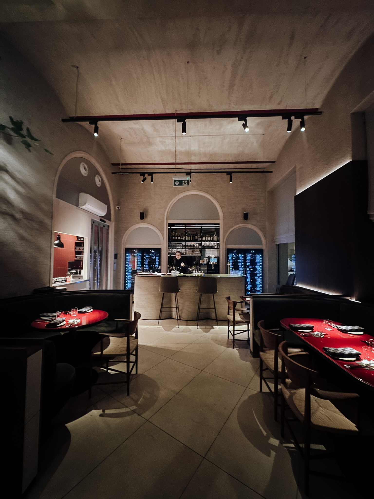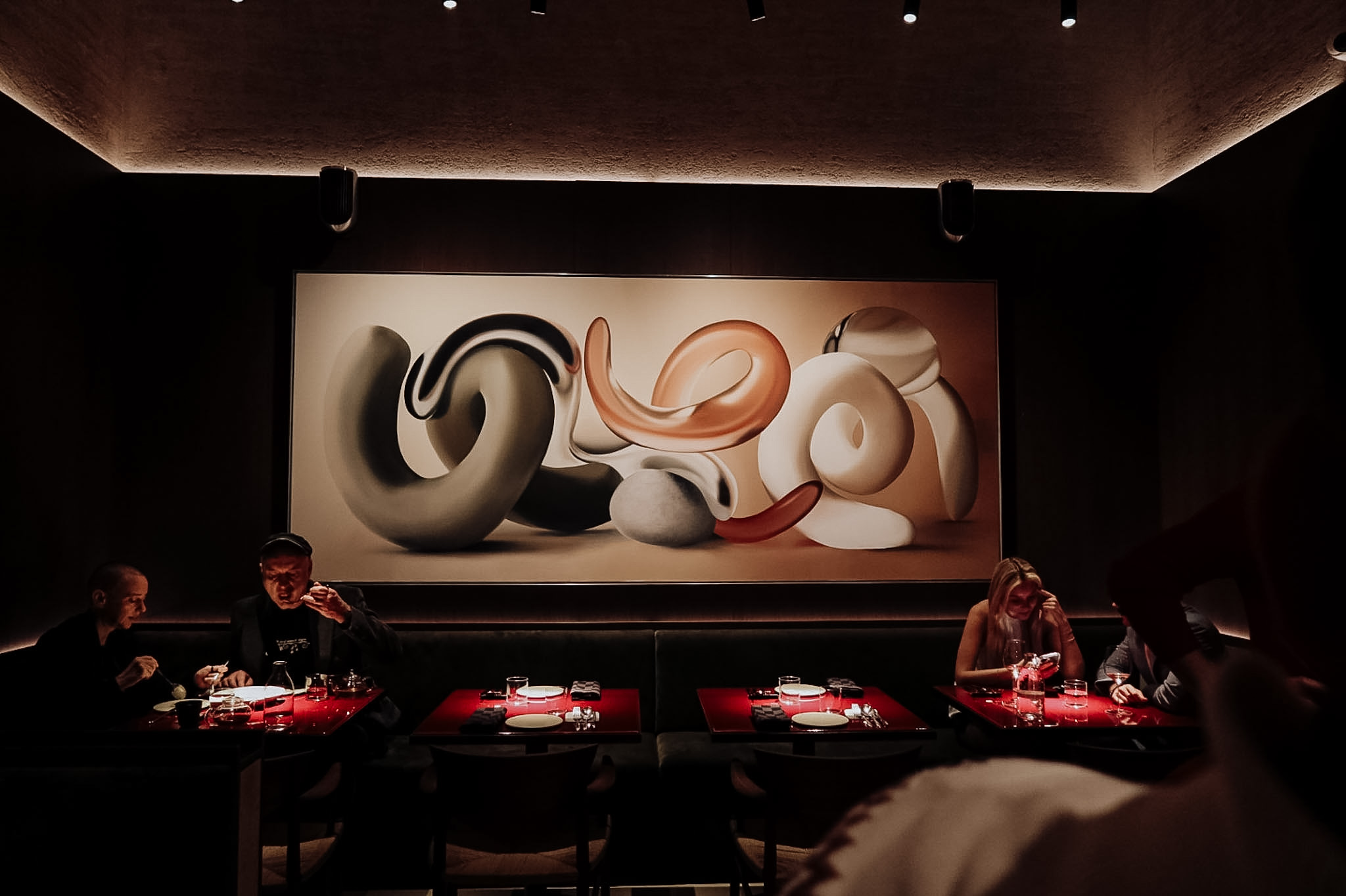 Ich war im Lara und ganz ehrlich: so gut. Mitten in der Wiener Innenstadt, aber drinnen komplett ruhig und super stylisch. Glas Bricks, stimmungsvolles Licht, blutrote Tische. Tolle Kunst.