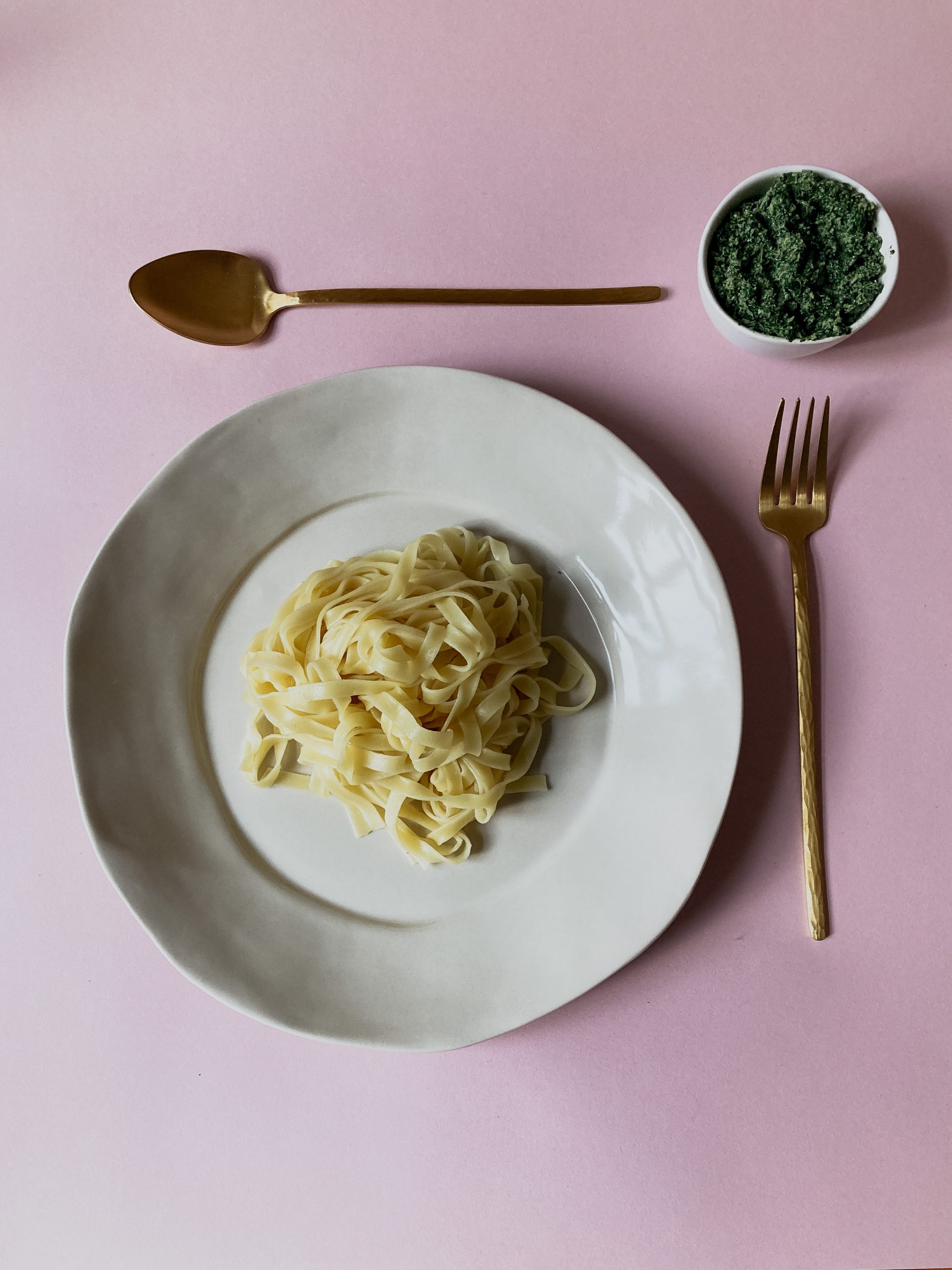 Jetzt geht es ganz schnell: Kale waschen, grob schneiden und zusammen mit Parmesan und Olivenöl in den Mixer. Mit Zitrone, Pfeffer und Salz abschmecken. Nudeln im Salzwasser ich Anleitung kochen und mit der Pesto vermengen (Mein Tipp: einmischen Salzwasser mit der Kale Pesto vermischen, dann wird alles etwas cremiger). Fertig!