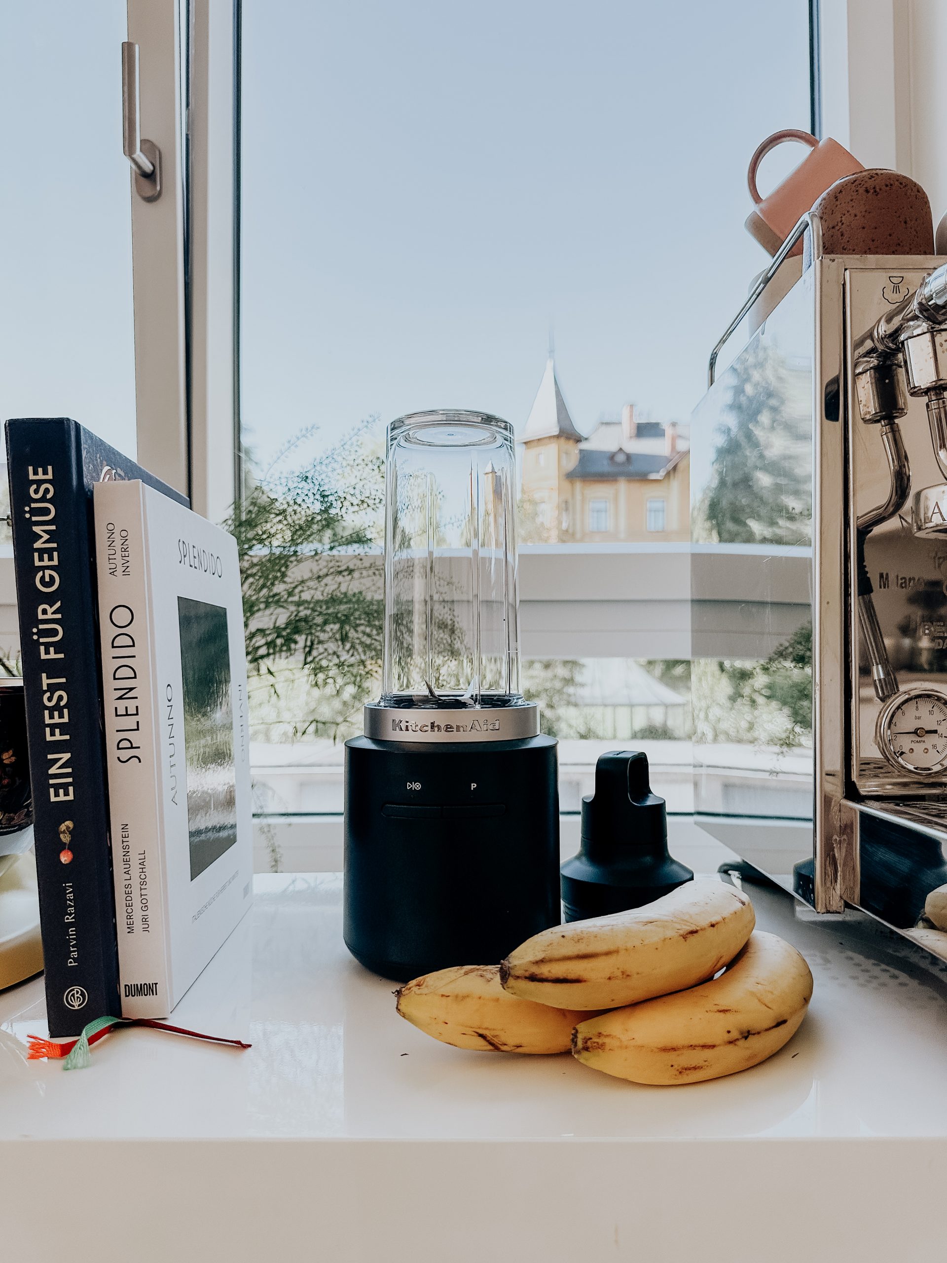 Alle Rezepte sind bewusst unkompliziert gehalten, mit Zutaten, die fast immer zuhause sind. Der KitchenAid-Mixer schafft selbst gefrorene Früchte ohne Probleme und ist schnell ausgespült – wichtig, wenn man zwischen Tür und Angel mixt und ein hungriges Kleinkind am Hosenbein hängt.