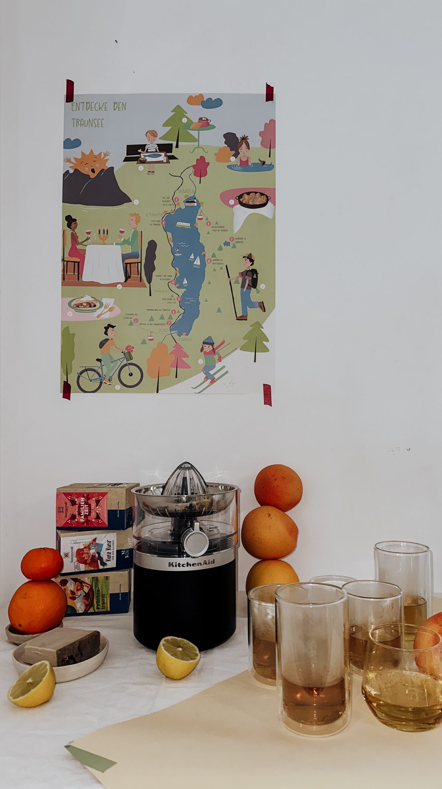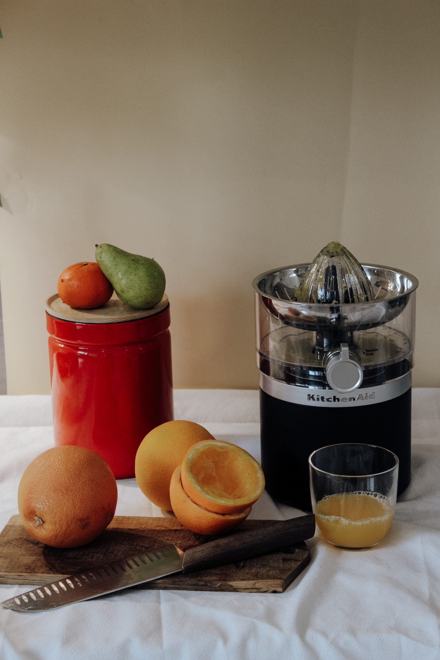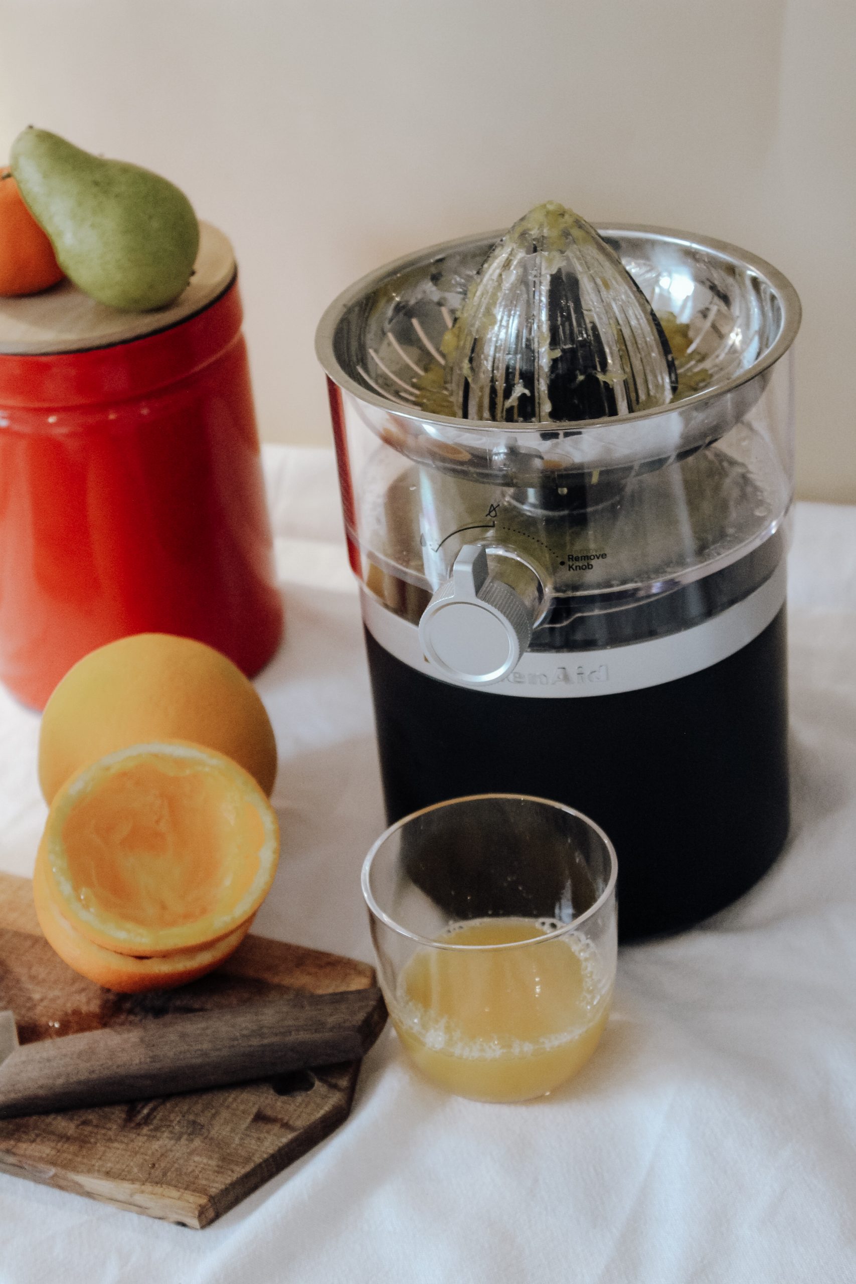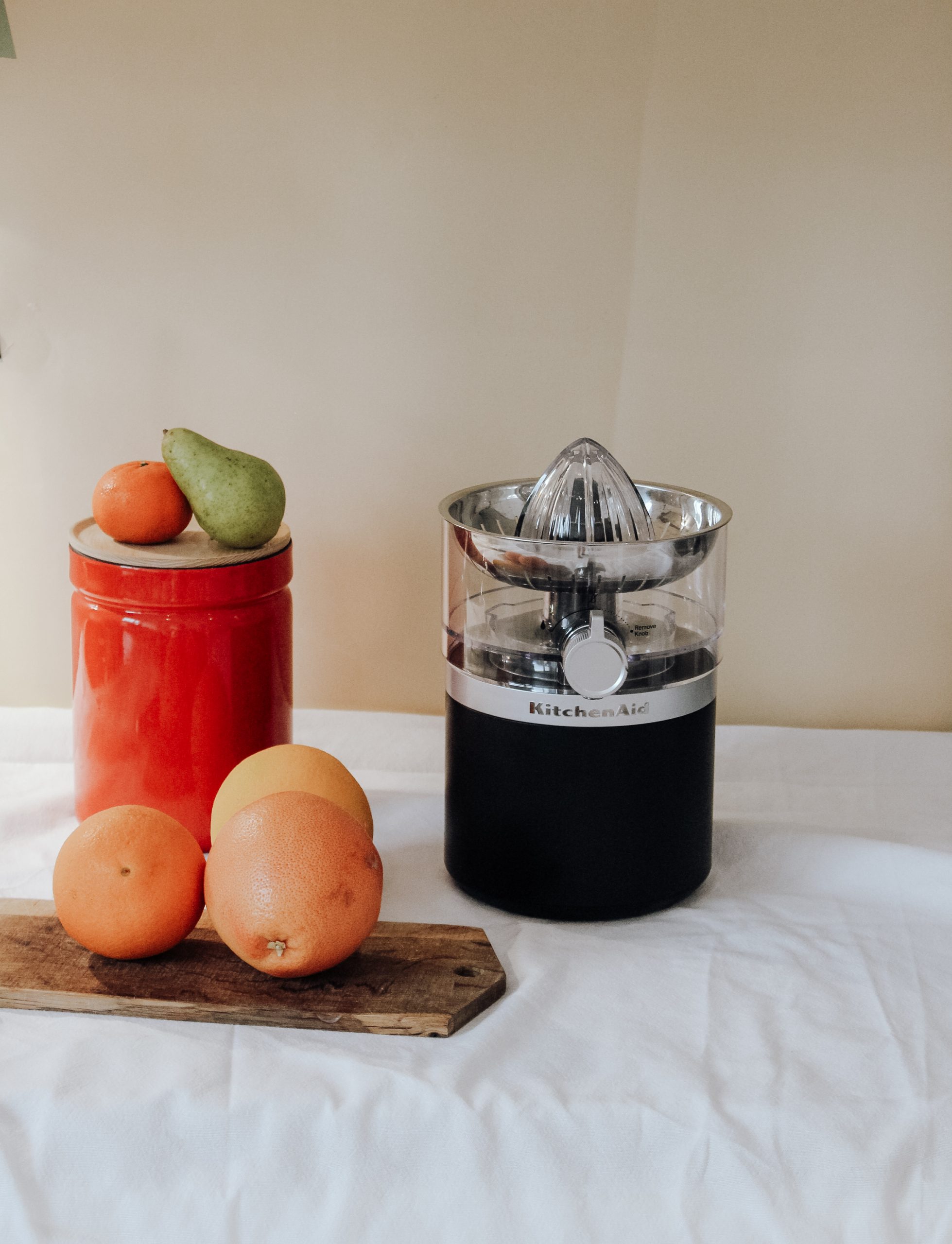 Wenn die Nase läuft oder die Stimmung am Boden ist, presse ich morgens gern ein paar Orangen aus. Wir verwenden dafür die kabellose KitchenAid GO Zitruspresse – ich mag, dass sie so unkompliziert ist, und die Kinder dürfen immer selbst ausquetschen. Das macht den Saft irgendwie noch besser.